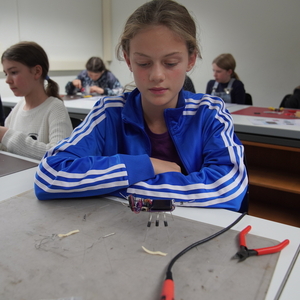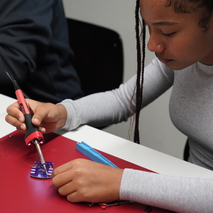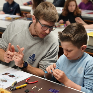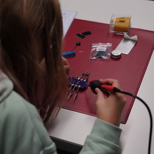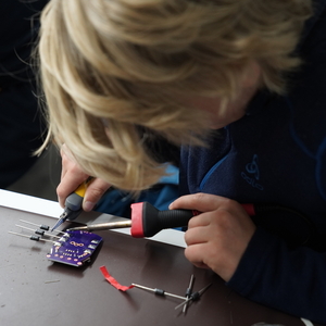 Together with our polymechanics apprentices, the children then got to create their own soldering project—a beetle capable of producing sound and light! Mentored by the polymechanics, each child learned how to solder with tin, attach a small solar panel to a light and speaker, and put everything together to create a small metal beetle.